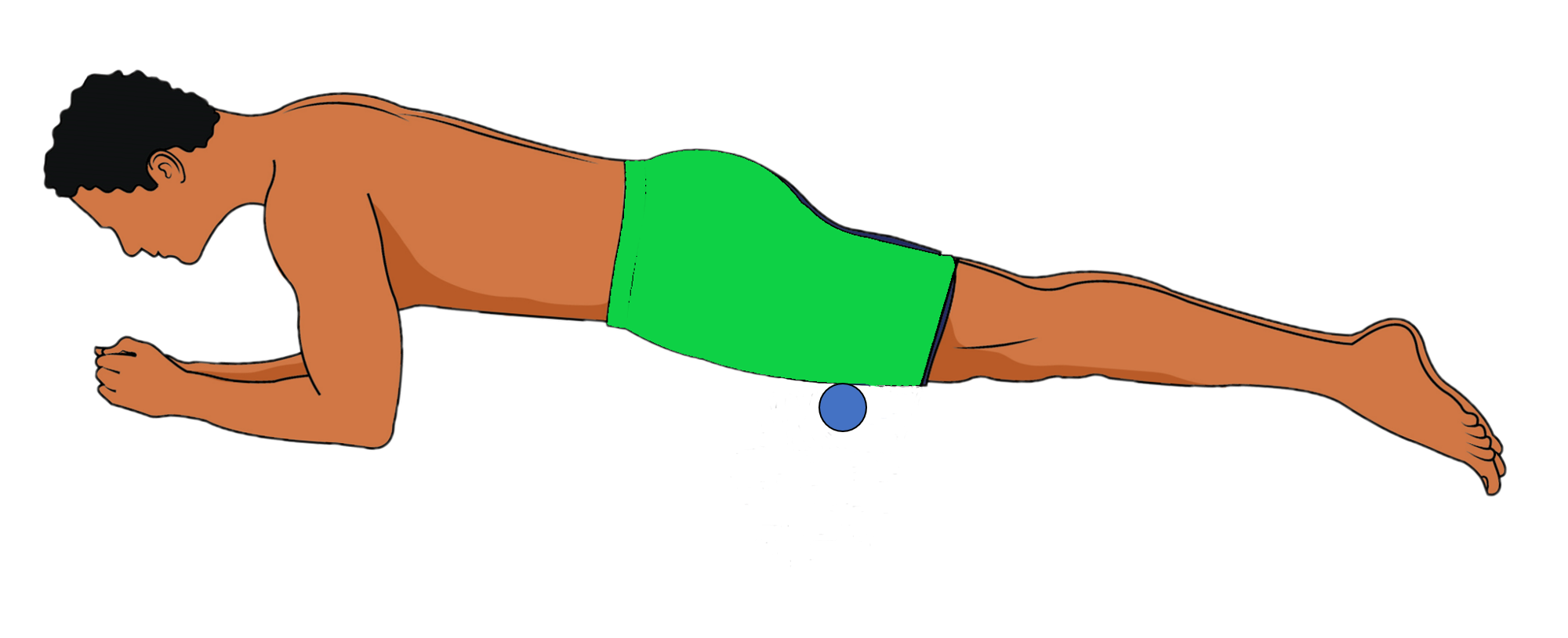 Make sure to place the massage ball on soft tissue on the sides of your hips while avoiding direct contact with bone.